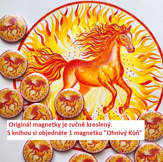 Magnetka Ohnivý kůň (průměr 5 cm) symbolizuje nadšení, vášeň, energii, intuici, jiskřivou radost, odvahu a energii nových začátků a cesty v souladu s hlasem srdce. A taky třeba odvahu a chuť proměnit svůj pohled na zrání ženy a otevřít se darům menopauzy a postmenopauzy.