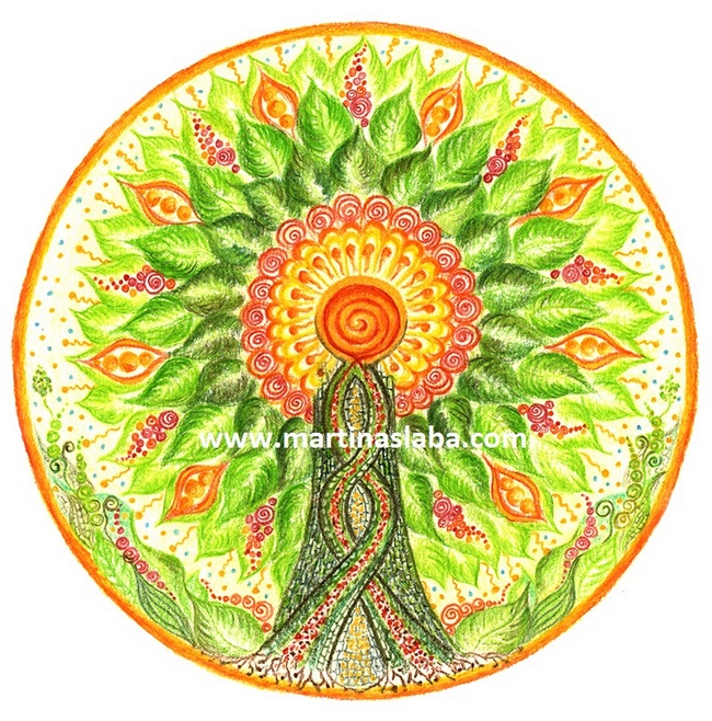 Esence mandaly: "Ve vztahu s partnerem/partnerkou jsem otevřená/otevřený. Dávám i přijímám, otvírám se vývoji a proměnám vztahu. Uvědomuji si vzájemné zrcadlení." Mandala je z karet Žena.